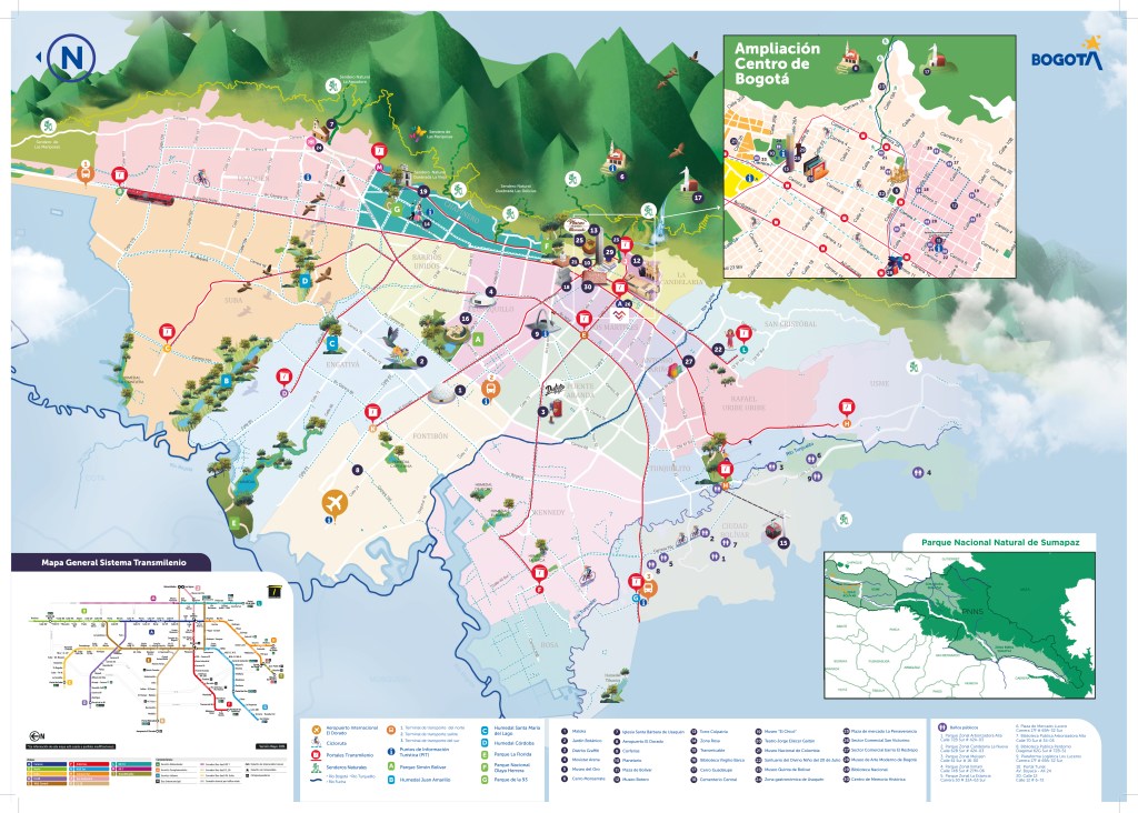 A continuación, una selección de algunas cartografías existentes y relativamente comunes o conocidas de la ciudad de Bogotá disponibles online, de representaciones variadas. Algunos mapas son antiguos y otros son más contemporáneos.